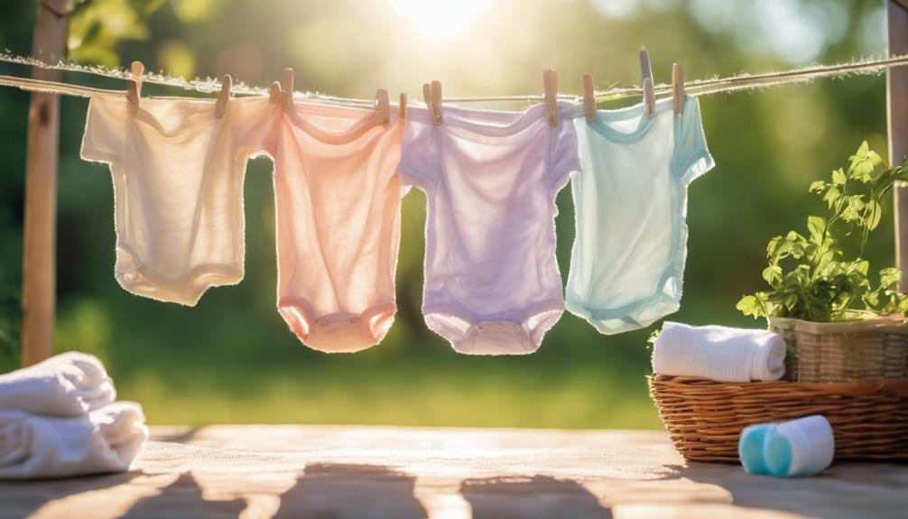 Kiedy pierzesz pampersy muślinowe, powinieneś używać zimnej wody do regularnych ładunków. Pomaga to zachować trwałość tkaniny i zapobiega kurczeniu się. Jeśli pieluszki są mocno zabrudzone, rozważ użycie ciepłej wody dla głębszego czyszczenia bez uszkadzania włókien. Zarezerwuj gorącą wodę tylko do dezynfekcji, ale nie używaj jej często, ponieważ może to osłabić tkaninę. Zawsze wybieraj łagodny, ekologiczny detergent wolny od szkodliwych chemikaliów i unikaj zmiękczaczy do tkanin. Odpowiednie techniki prania mogą wydłużyć żywotność twoich pieluszek, a jest wiele więcej do odkrycia na temat utrzymania ich jakości i skuteczności.